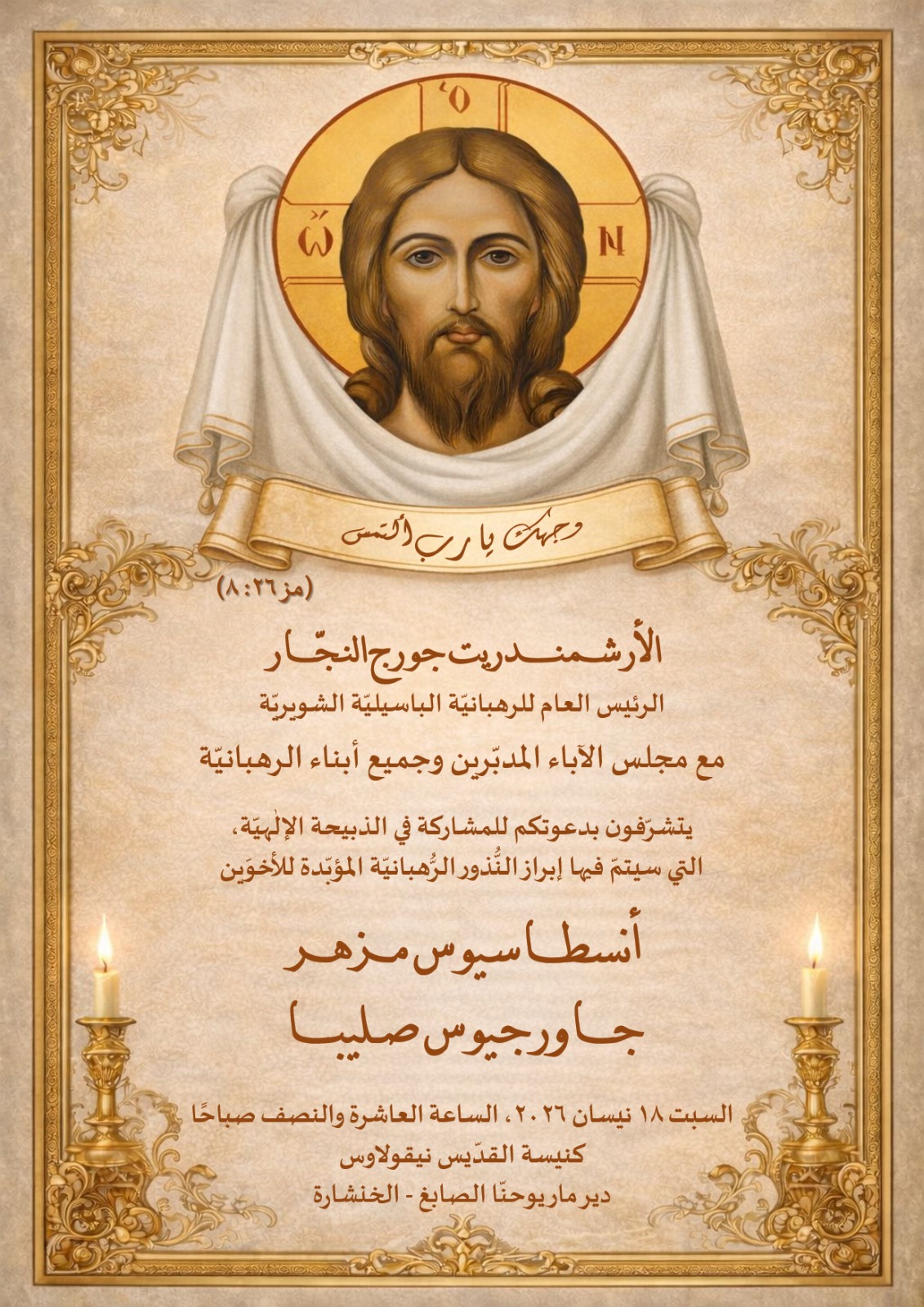 أولاً: الكنيسة في العموم في النرتكس:- أمام باب الكنيسة الغربي. في قلب الدير الأم، للرهبانية الباسيلية الشويريَّة، المؤسسة ما بين